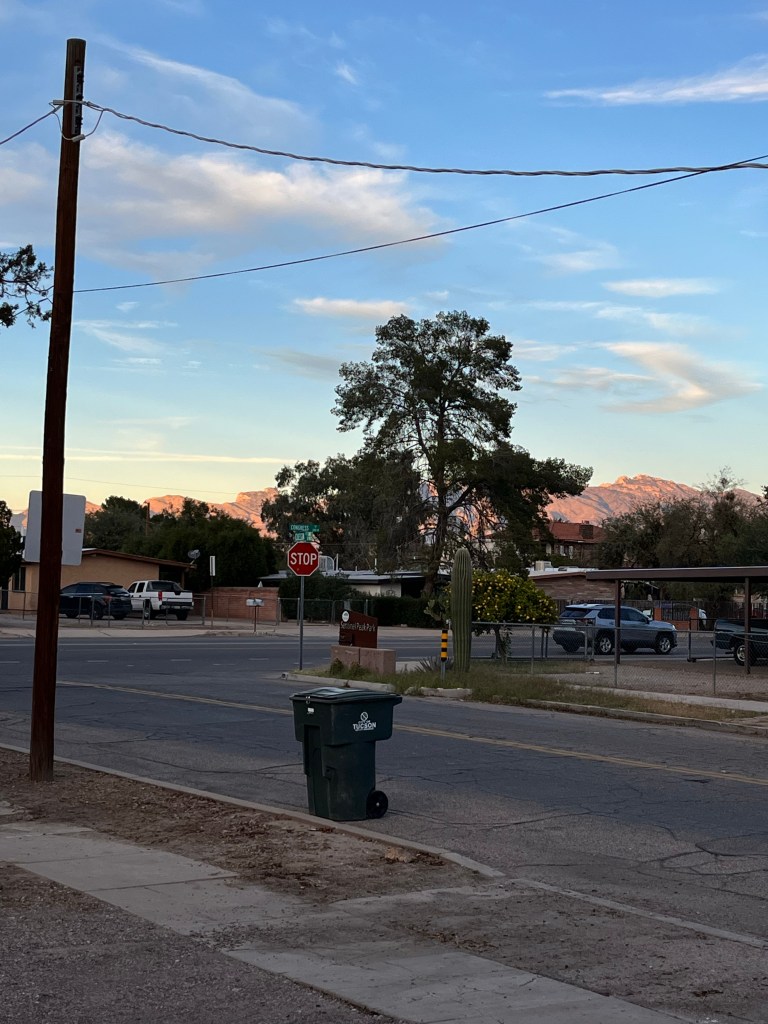 When I first moved to Tucson back in 2013, for a Masters program at UofA, I rented a place with a flat-roofed carport and a ladder built-in to climb up. The view was breath-taking every time I’d go up there no matter what time of day or night, so I’d go up there nearly every day, but almost always at sunset in order to witness the radiance of the Catalinas.