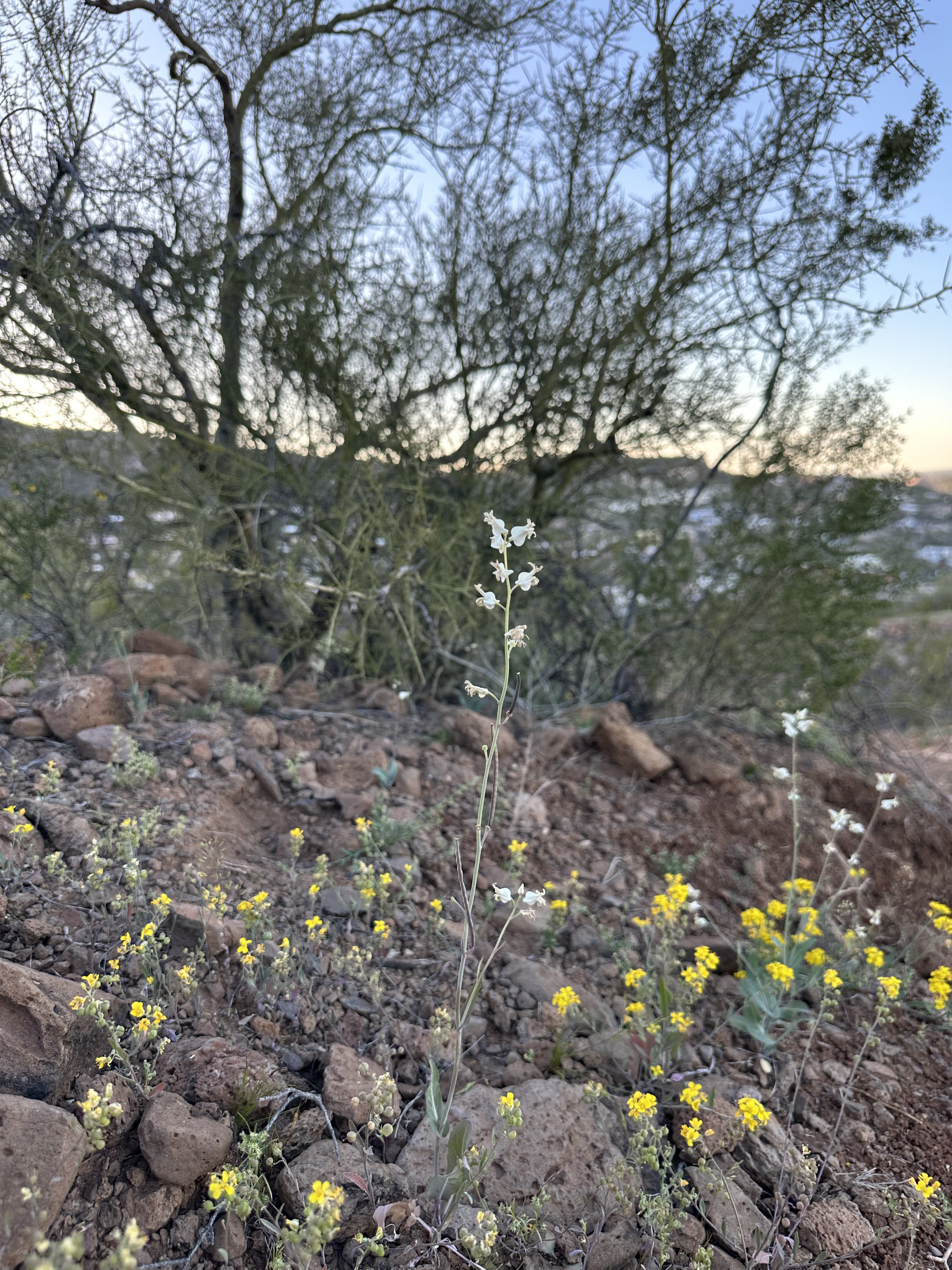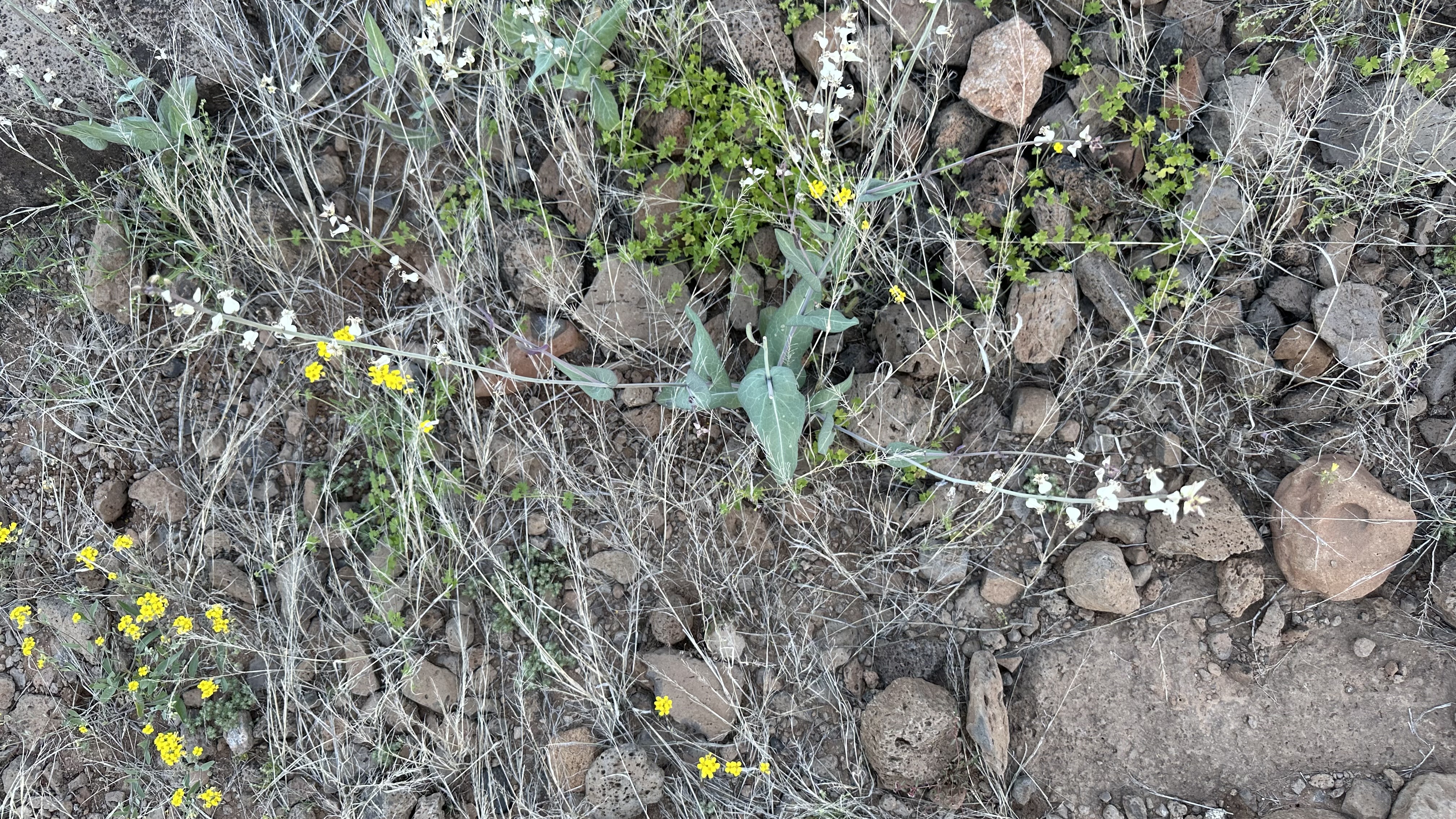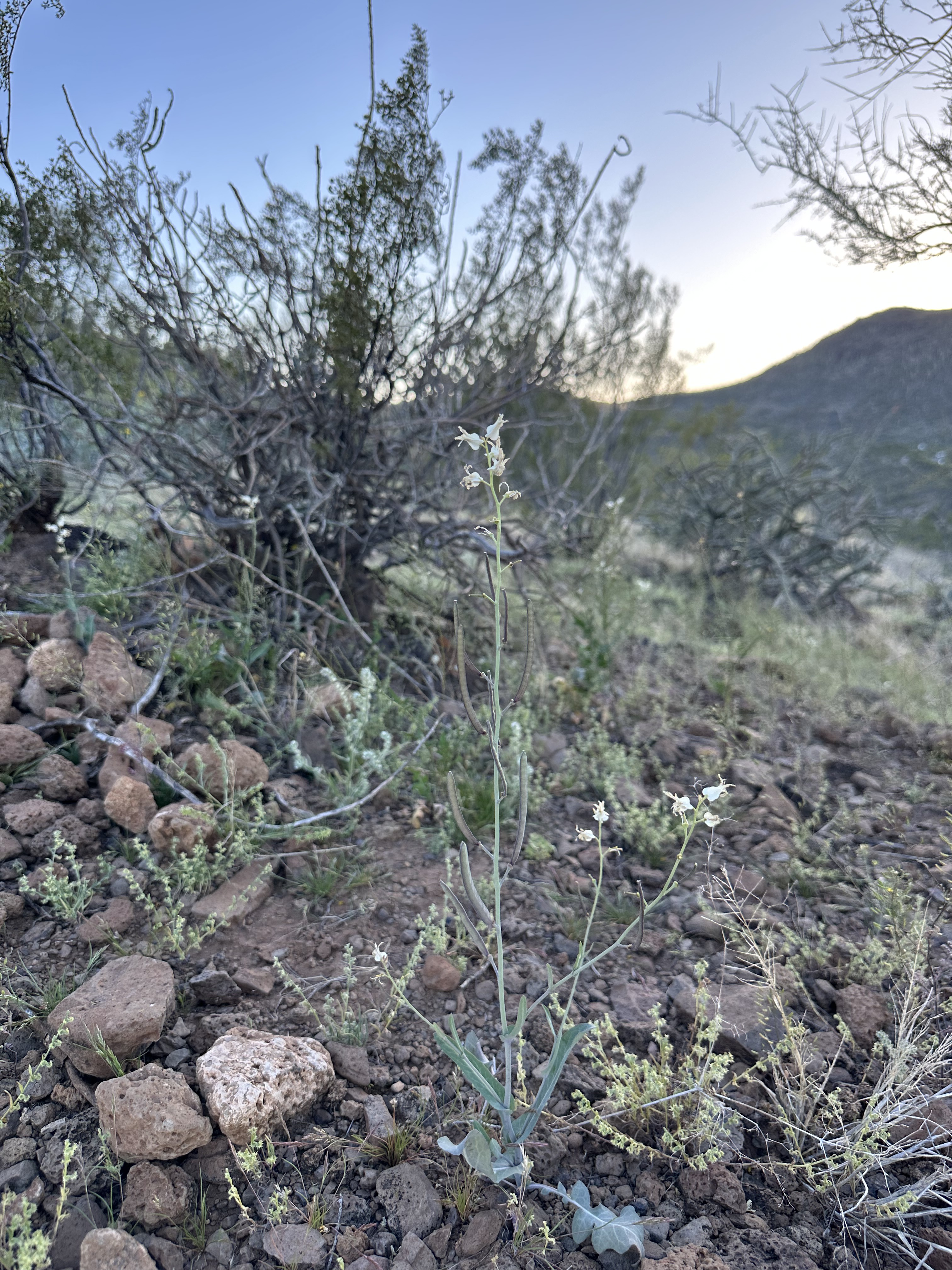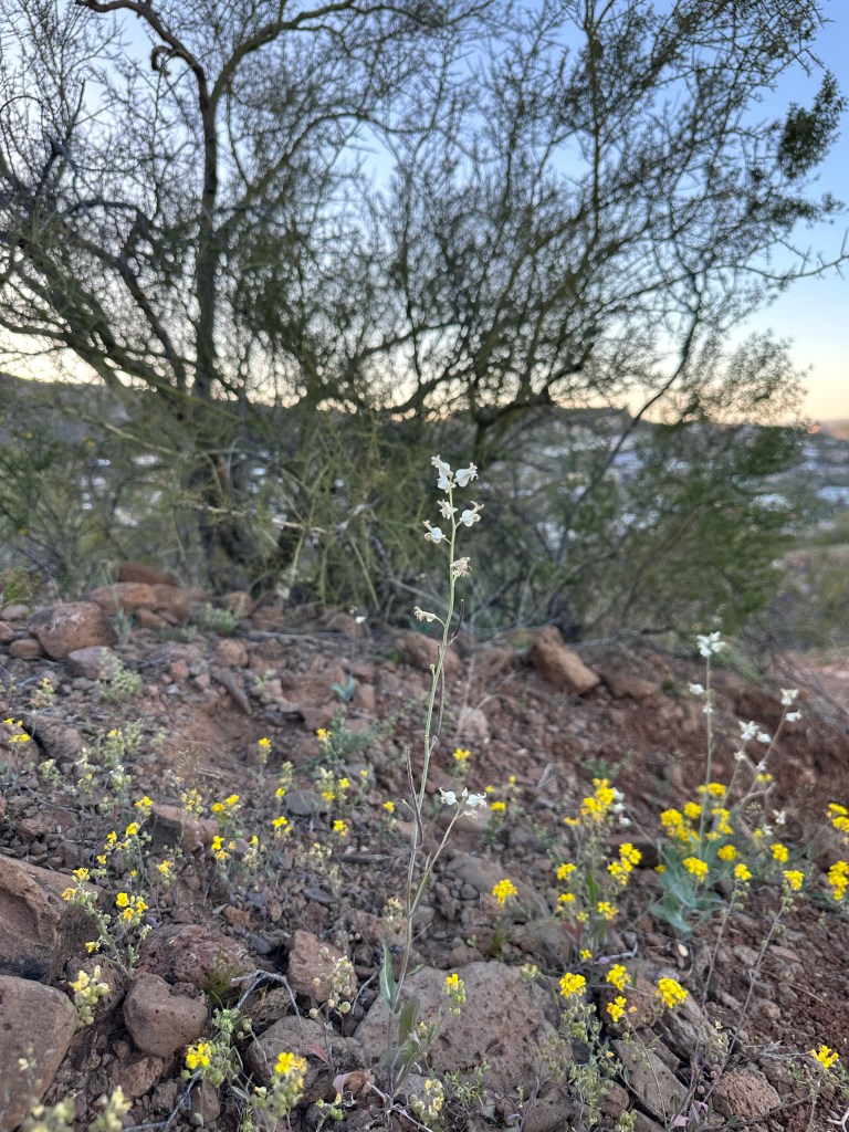 The Arizona or Lyreleaf Jewelflower, Streptanthus carinatus ssp. arizonicus (link to Lady Bird Johnson Wildflower center). Apparently these also come in green, but sadly I’ve not seen any green ones.