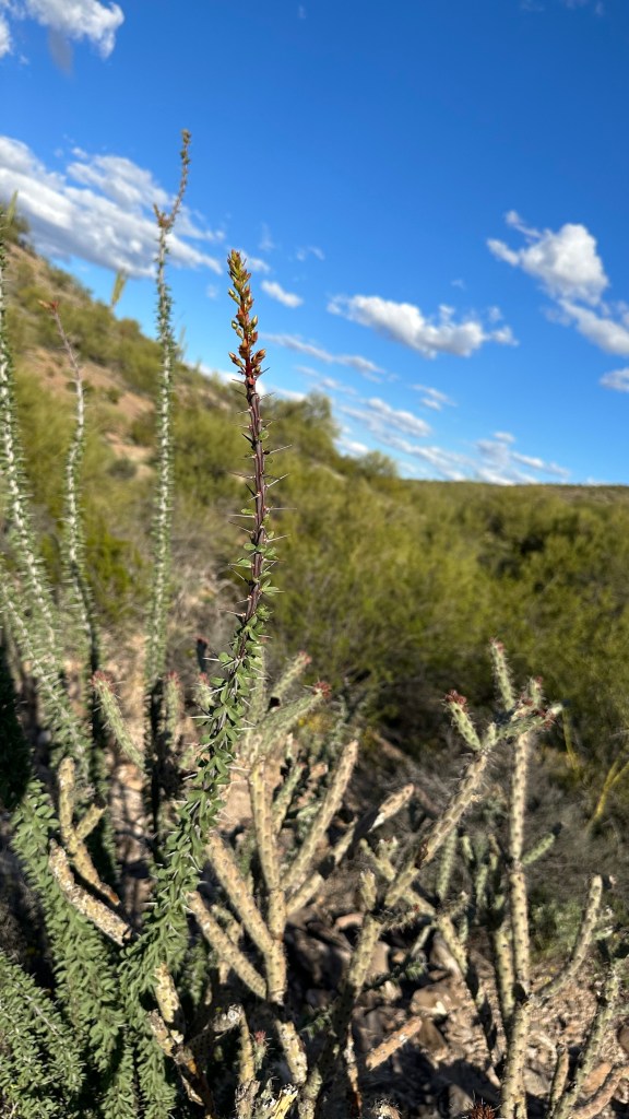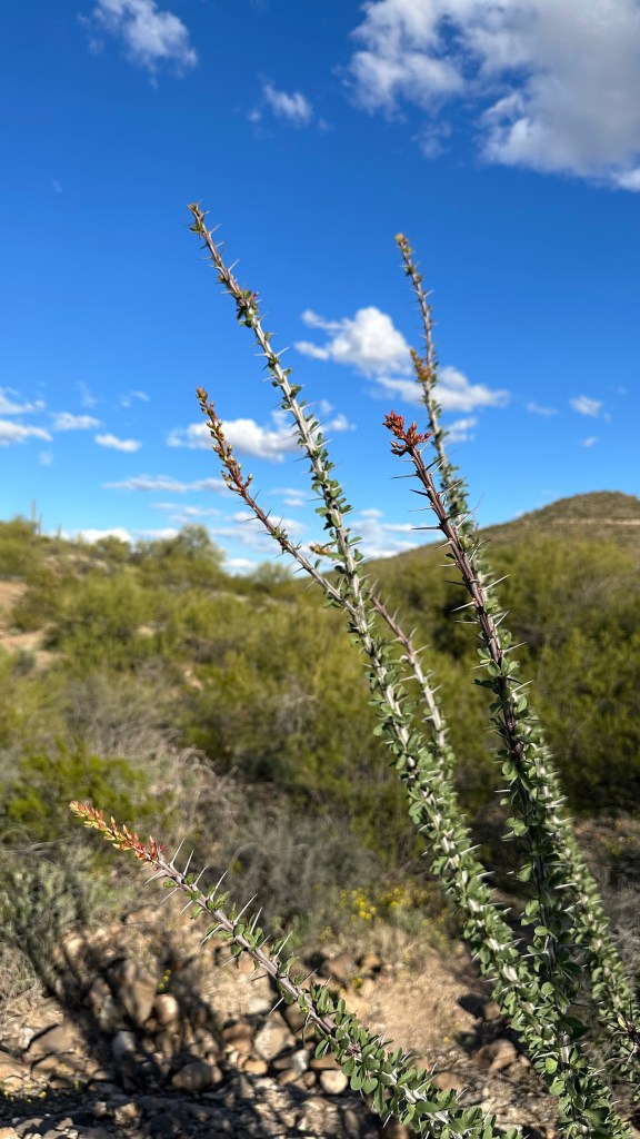 I always exclaim that when I see Ocotillo. It’s a fun word to say, first of all. And I’m starting to like the double-L = Y thing with Spanish and French. It particularly offended me in the context of attempting to build a reading knowledge of French. But even that duplicitously half-pronounced language has grown on me. Ocotillo! Ocotillo!