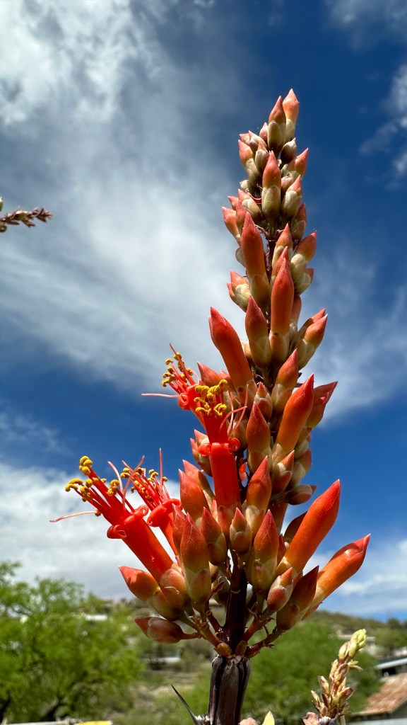 As I was walking away someone across the street mentioned that down toward Patagonia to the southeast there’re dense stands of Ocotillo, all blooming right now. It must be a magical sight!