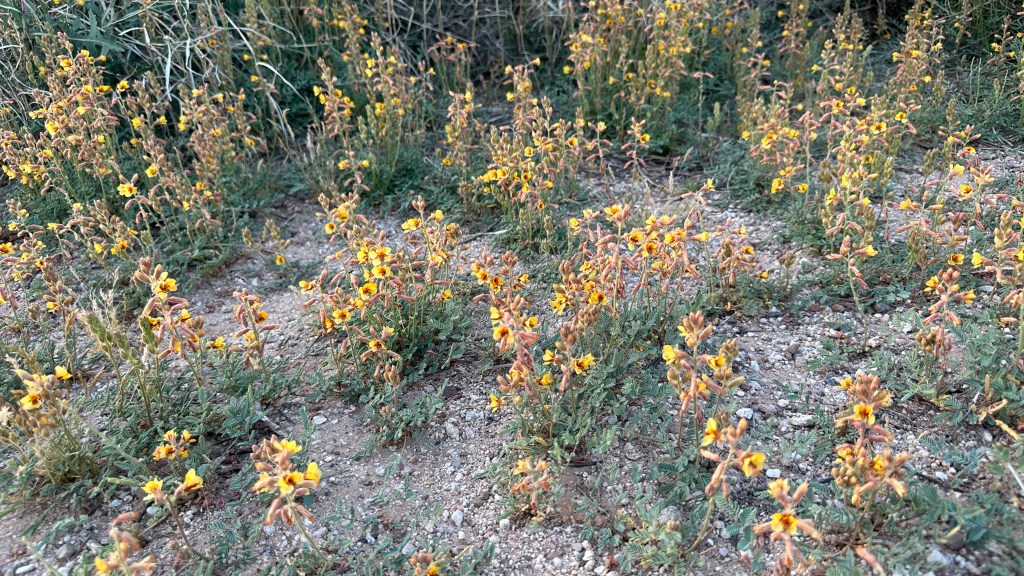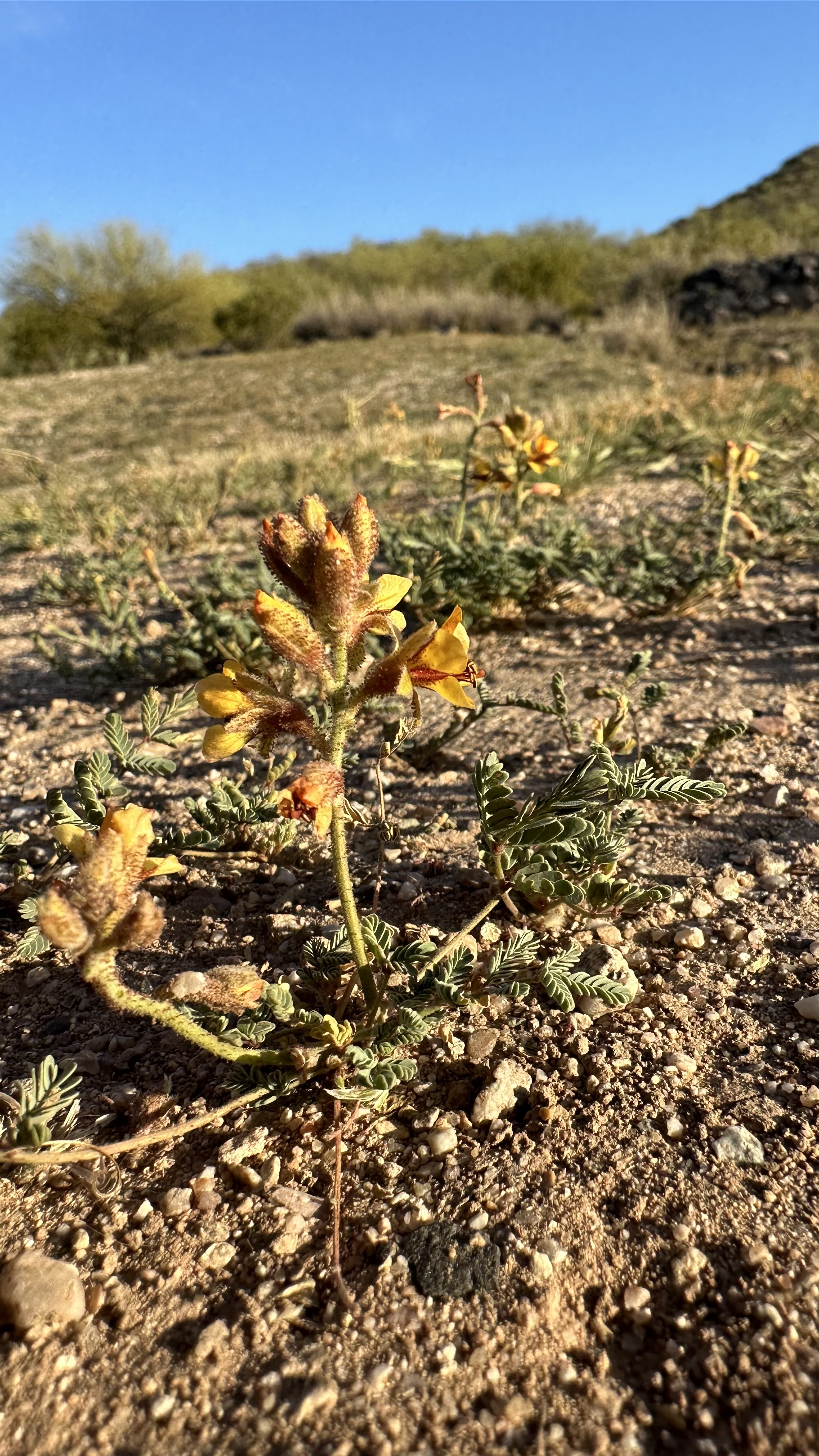 So-called “Hog Potato,” “Pig Nut,” or “Indian Rushpea”: Hoffmannseggia glauca happens also to be a tuber. [link to Yavapai County Native and Naturalized Plants Database.]