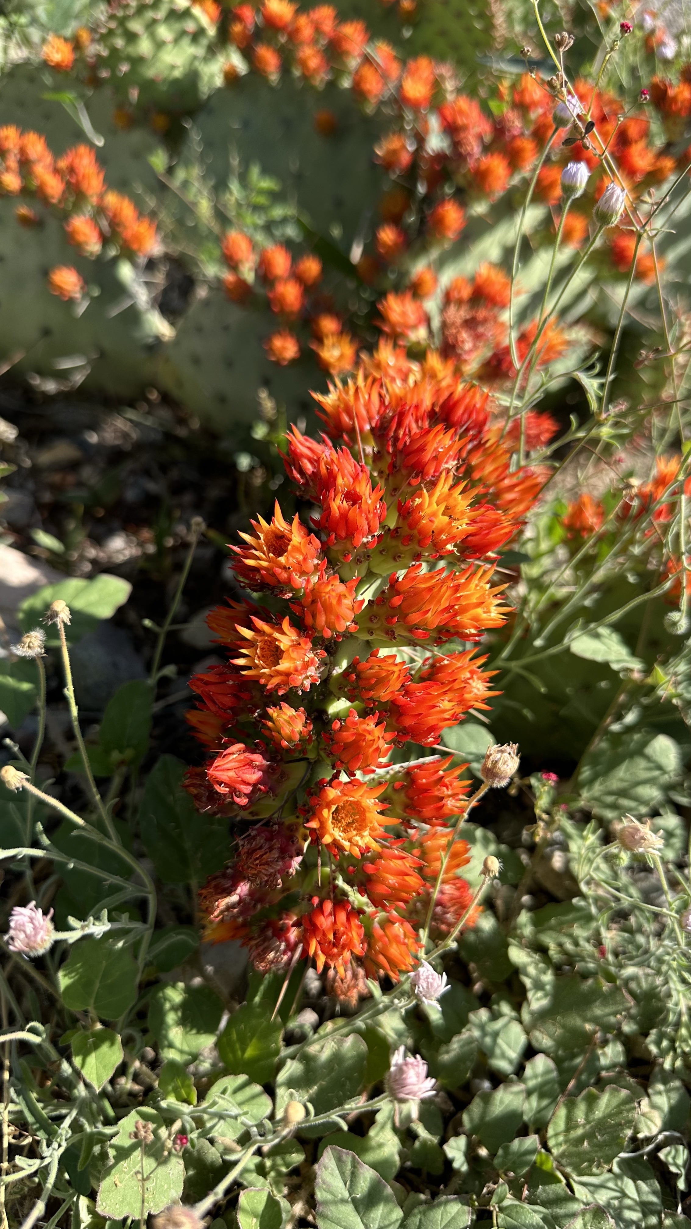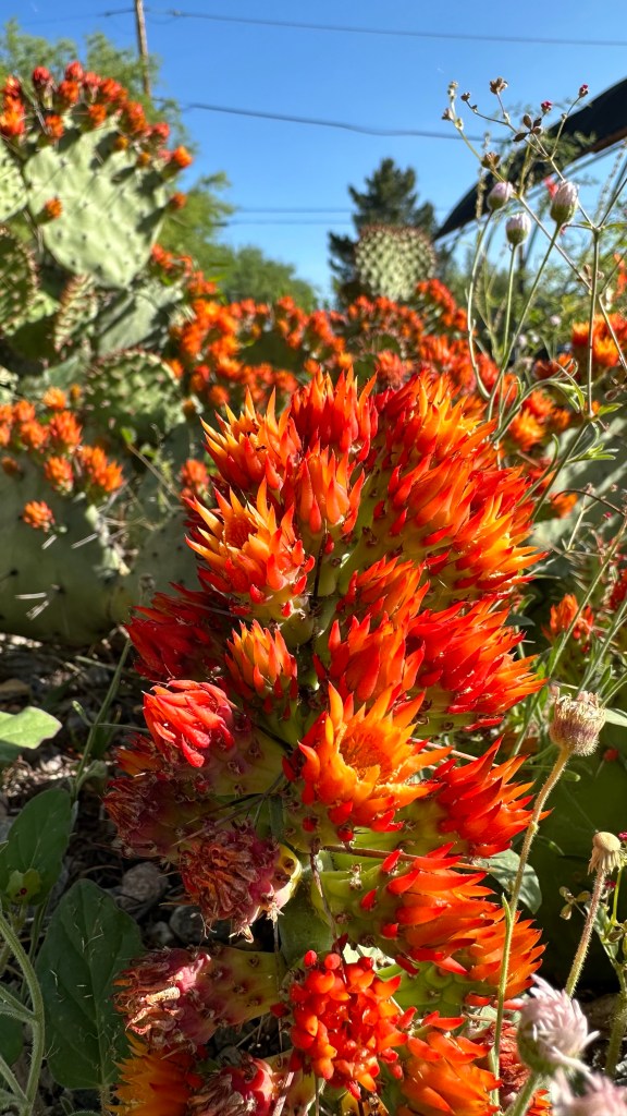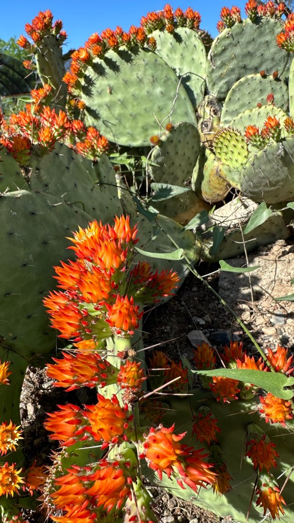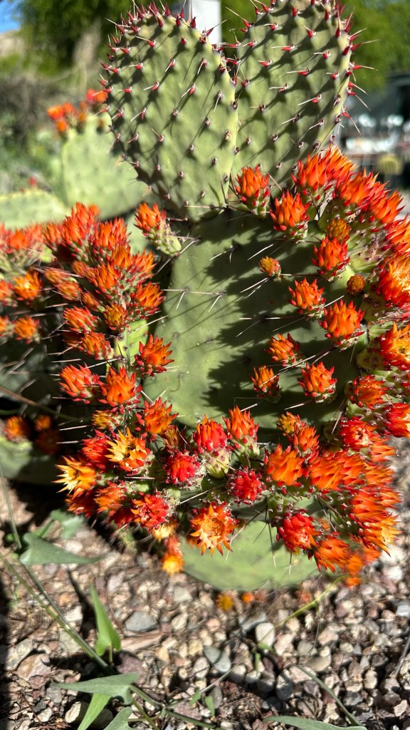 Apple is convinced most of these are pictures of sedum! They sure look like sedum flowers, but they’re not on sedum. What a gorgeous Prickly Pear. I mean all of these prickly pears are stunning beyond imagination, but wow this one has incredible features. And the colors!! *chef’s kiss*