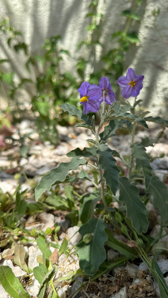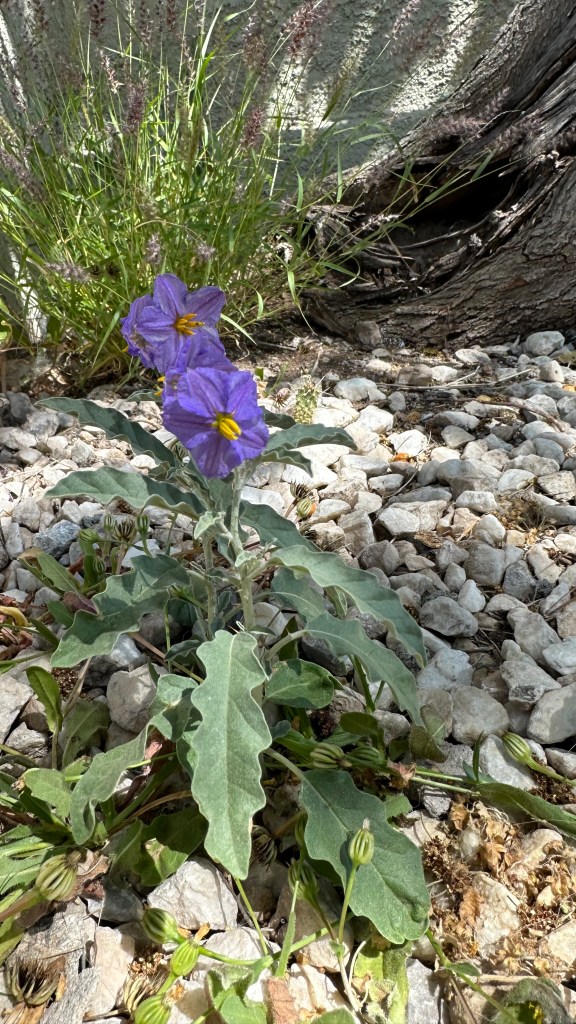 A super prevalent “weed” in the West, Silverleaf Nightshade is stunning. First of all, the thorns: as soon as these plants started coming up I was fascinated. What a determined species! But then they put out these gorgeous flowers and I officially fell in love with them. [Link to Lady Bird Johnson Wildflower Center.]
