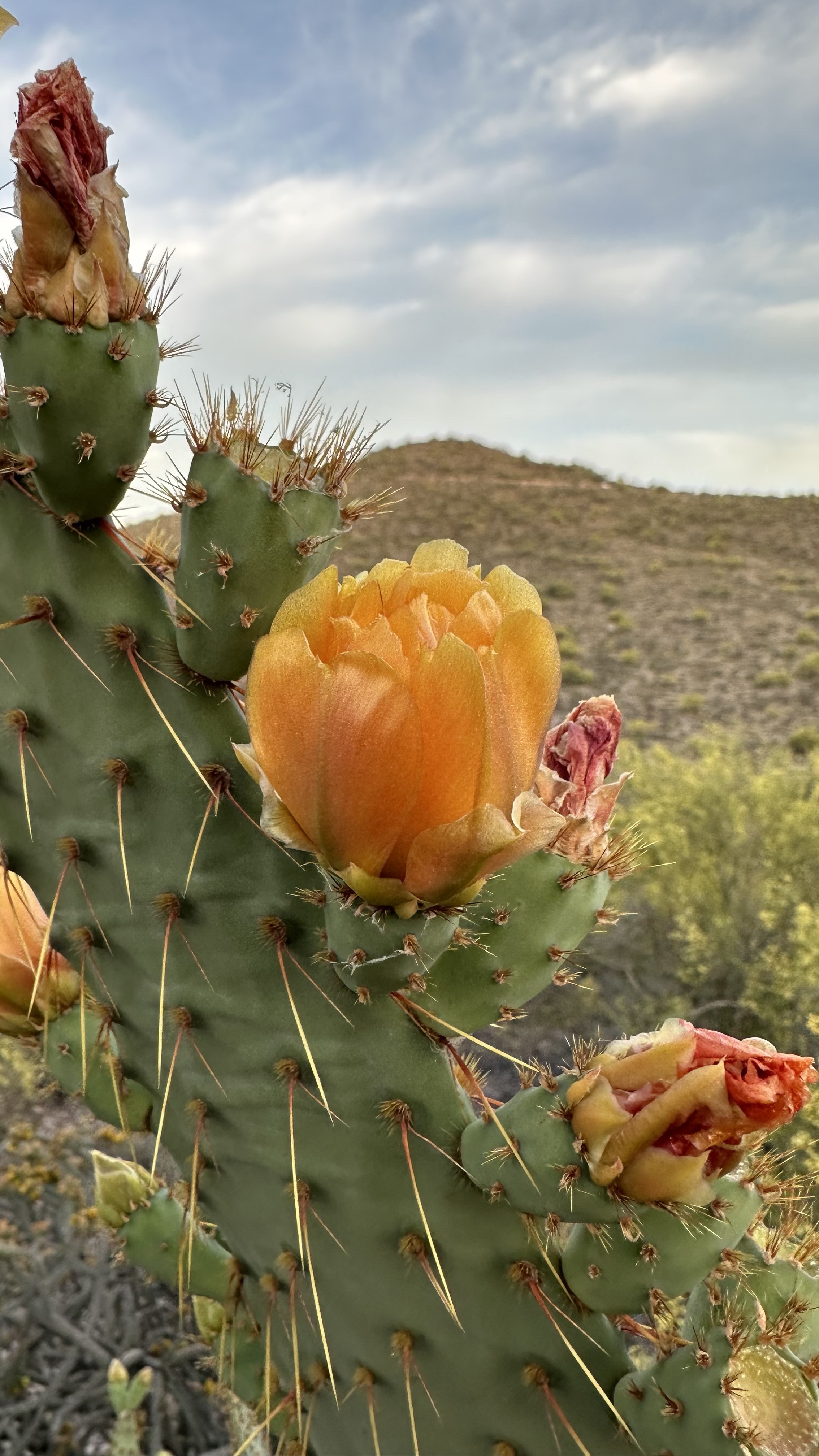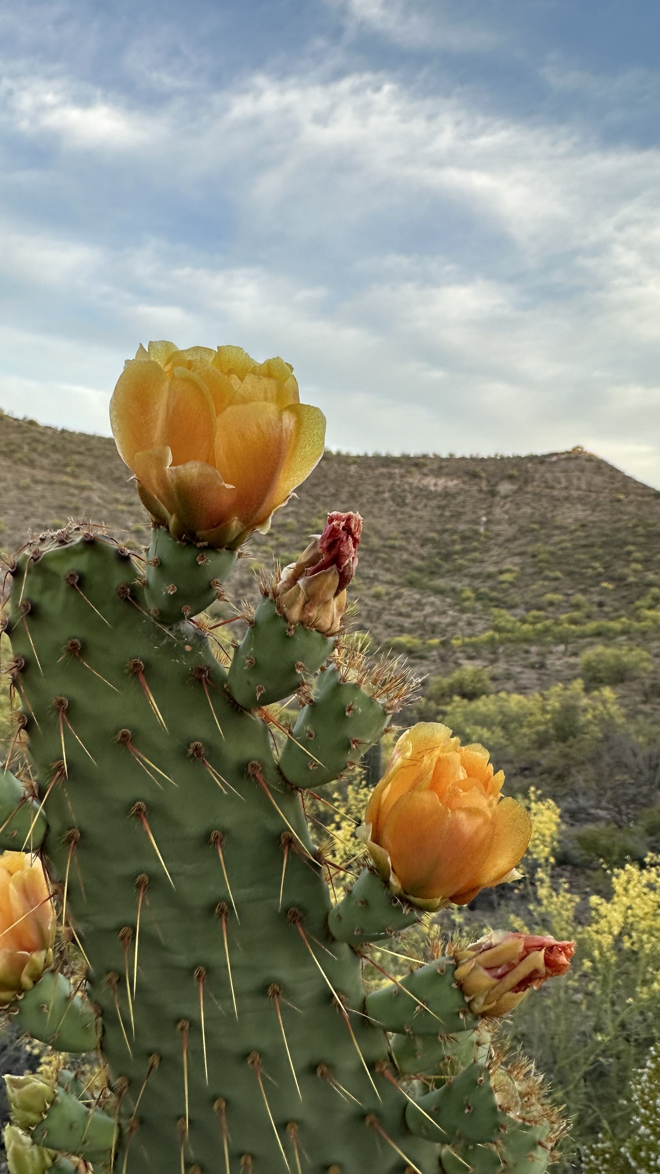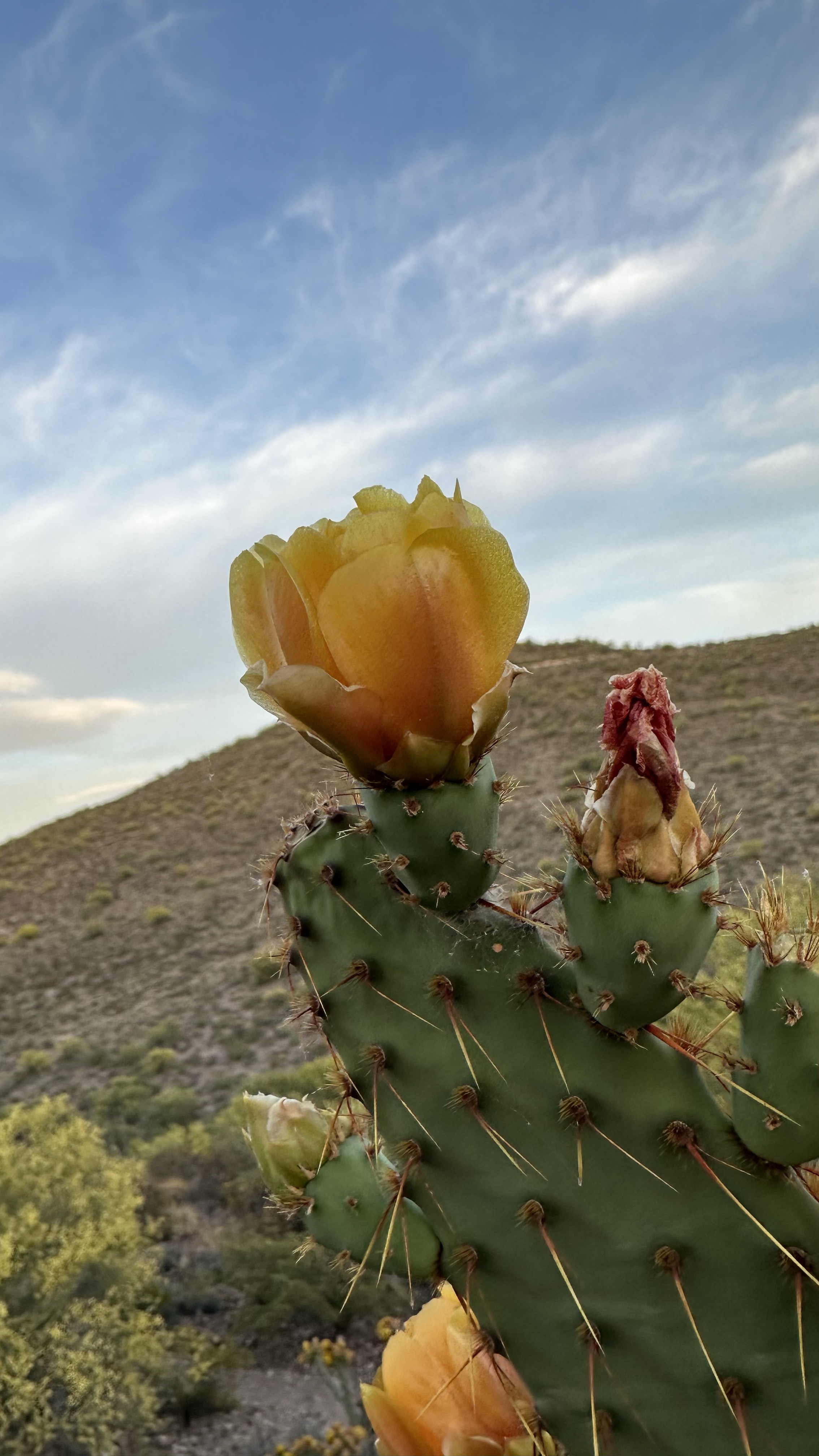 Spring Flowers, Tucson, Part 43: Cow’s Tongue Prickly Pear (Opuntia Englemannii v. linguiformis)