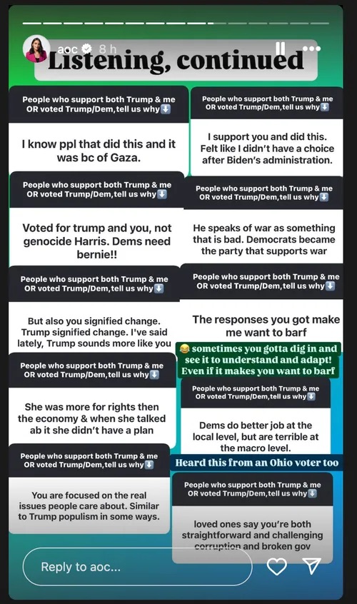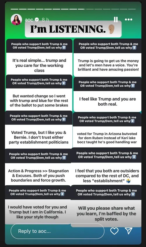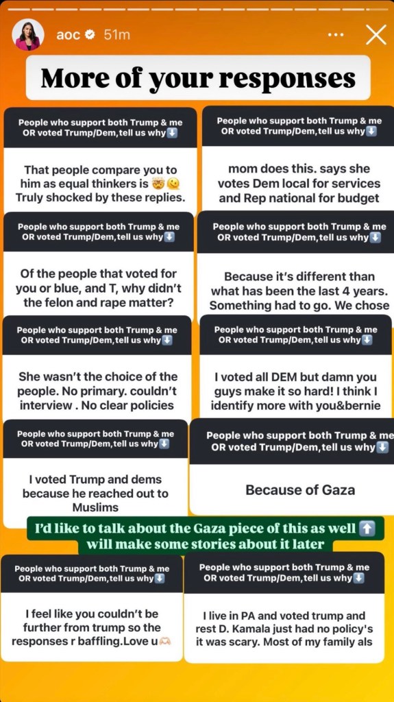 So AOC is asking her constituents how those who voted for Trump could have also voted for her, and the answers show that what is missing in this country is a robust democratic populist communalist party.